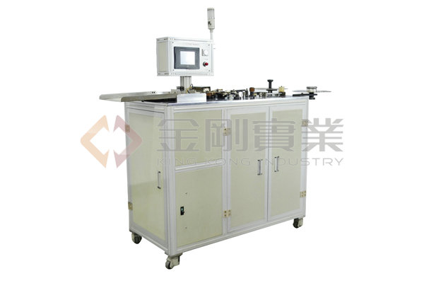 本設備可提高生產產量和穩定性,采用全自動輸送機構,卡位供料,光纖定位。針對產品(平面端子)切斷,粘帶沖孔的精度,采用一次性完成。其它耗材均有檢測報警功能。打折,收料(折疊式),采用氣缸傳動。 盤式上料———卡位供料———自動切斷,粘帶———分割器間歇式拉帶———自動打折,收料(折疊式)———人工滿料剪裁。